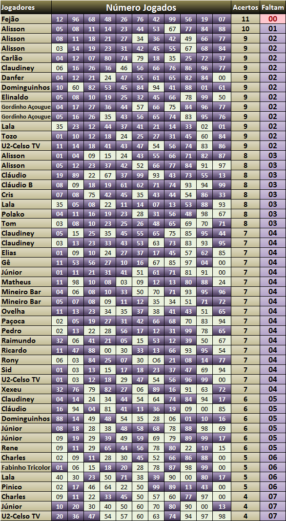 Tabela atualizada até o dia 22.12.2014 - 19:30 hs